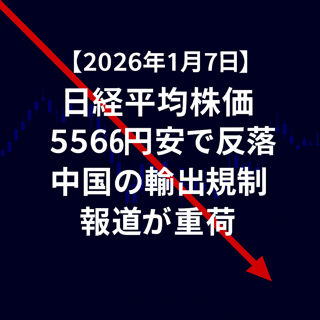 本日(2026年1月7日)の東京株式市場で、日経平均株価は前日比556円10銭安(-1.06%)の51,961円98銭で取引を終え、3営業日ぶりに反落しました。心理的節目の5万2000円を割り込む展開となり、前日までの急ピッチな上昇に対する調整売りが強まりました。