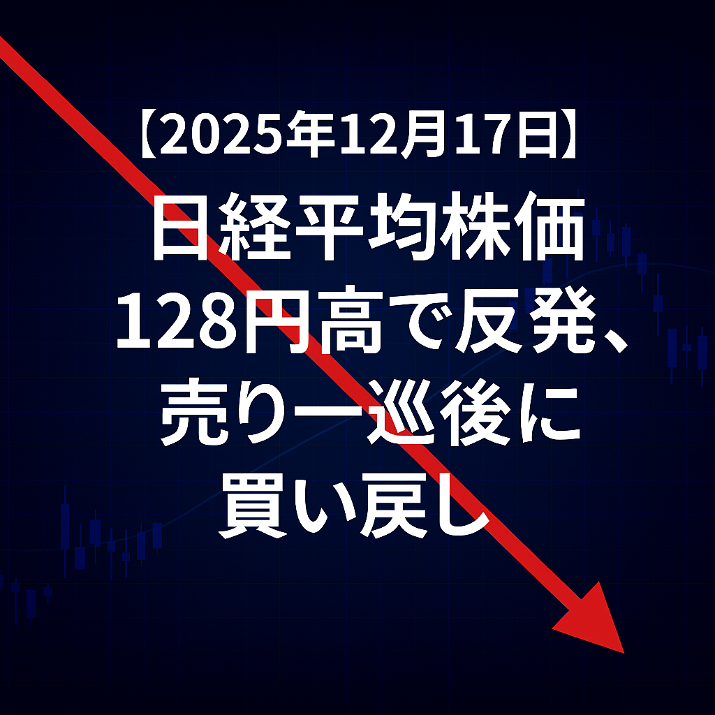 本日(2025年12月17日)の東京株式市場で、日経平均株価は前日比128円99銭高(+0.26%)の49,512円28銭で取引を終え、3営業日ぶりに反発しました。前場は米株安の影響で一時300円超の下落となりましたが、売り一巡後は買い戻しが入り、終盤にかけて堅調な展開となりました。